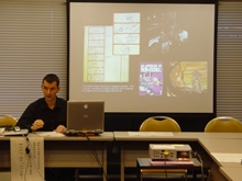 講師を務めたのは,昨年秋,日仏博士課程コンソーシアム交換留学生として来日し,以来,法政大学国際日本学研究所客員学術研究員として,「手塚治虫の映像作品と,それの映画書法(エクリチュール)への影響」と題された博士論文を準備する1年を過ごしたサミュエル・カクゾロフスキー氏(トゥールーズ第2大学)である.この勉強会は,離日を前にした氏の1年間の手塚研究の成果発表会も兼ねるものともなった.