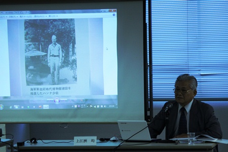 名桜大学名誉教授で久米島博物館名誉館長の上江洲均先生には、「戦後沖縄の博物館」というテーマで、戦後間もなくの焼野原から、アメリカ海軍のハンナ少佐の手によって琉球の芸術・文化作品が集められ、最初の郷土博物館が出来上がるまでの歴史と、それがいかにアメリカの占領政策、また、沖縄の人々の自己認識に関係したのかをお話し頂いた。