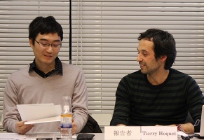今回は、フランスのジャン・ムーラン・リヨン第3大学のチエリー・オケ氏を迎え、「サイボーグ:現代マンガにおけるポストヒューマンのタイポロジー」と題して行われた。報告と質疑応答はフランス語で行われ、司会はHIJAS所長で法政大学文学部の安孫子信教授、通訳は法政大学文学部哲学科の石渡崇文氏と安孫子所長が務めた。