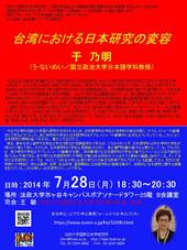 【開催案内】2014年度第4回東アジア文化研究会『台湾における日本研究の変容』 (2014.7.28)のお知らせ2014/05/30
