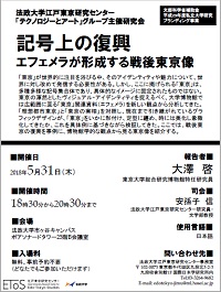 【開催案内】江戸東京研究センター 第3研究プロジェクト「テクノロジーとアート」主催研究会「記号上の復興」(2018年5月31日)2018/05/16
