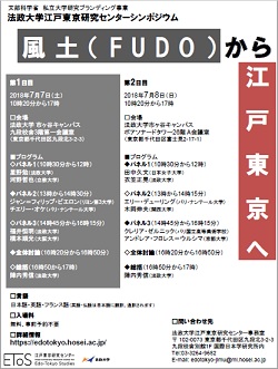【開催案内】江戸東京研究センター主催 国際シンポジウム「風土(FUDO)から江戸東京へ」(2018年7月7日-8日)2018/06/18