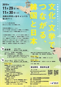 【開催案内】日韓連帯文学フォーラム「文化・文学でつながる、韓国と日本」(2019年11月29日・30日)2019/10/21