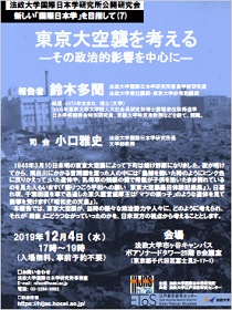 【開催案内】国際日本学研究所主催・江戸東京研究センター共催 新しい「国際日本学」を目指して(7)公開研究会「東京大空襲を考える-その政治的影響を中心に-」(2019年12月4日)2019/11/09