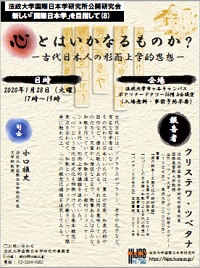 【開催案内】国際日本学研究所主催 新しい「国際日本学」を目指して(8)公開研究会「心とはいかなるものか?-古代日本人の形而上学的思想-」(2020年1月28日)2020/01/08