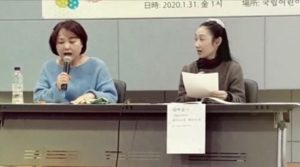 (左)通訳者:パク・ジョンジン氏 / (右)講演者:キム・ヨンヒ氏