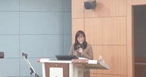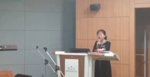 (左)通訳者:ファン・ジニ氏 / (右)基調講演者:張晟喜氏