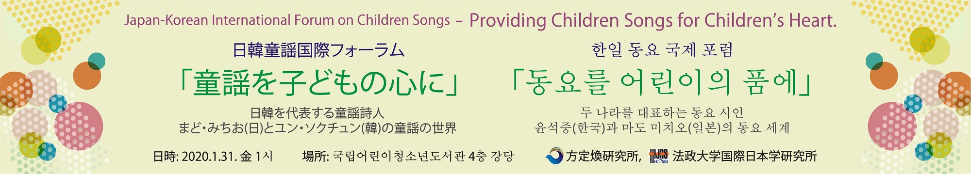■主催:張晟喜(平成29-31年度科学研究費助成事業(若手研究(B))「まど・みちおとユン・ソクチュンの童謡の比較―歌われる童謡を巡って」[研究課題番号:17K13437]/(韓国)方定煥研究所