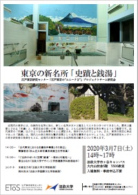 【開催案内/※開催延期(2020年2月26日記事更新)】江戸東京研究センター第2研究プロジェクト「江戸東京の「ユニークさ」」主催研究会「東京の新名所:史蹟と銭湯」(2020年3月7日)2020/02/11