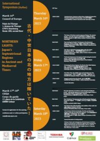 Scientific Committeeは、小口雅史(HIJAS)、François LACHAUD(フランス国立極東学院(EFEO) )、Virginie FERMAUD(CEEJA)の3名。第1回のタイトルはNORTHERN LIGHTS : Japan’s Septentrional Regions in Ancient and Mediaeval Times。邦題は「古代・中世日本の北の地方は輝いていた!」とさせていただいた。