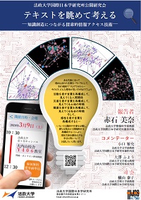 【開催案内】法政大学国際日本学研究所主催 公開研究会 「テキストを眺めて考えるー知識創造につながる探索的情報アクセス技術ー」を開催します。2024年3月9日(土)2024/02/13