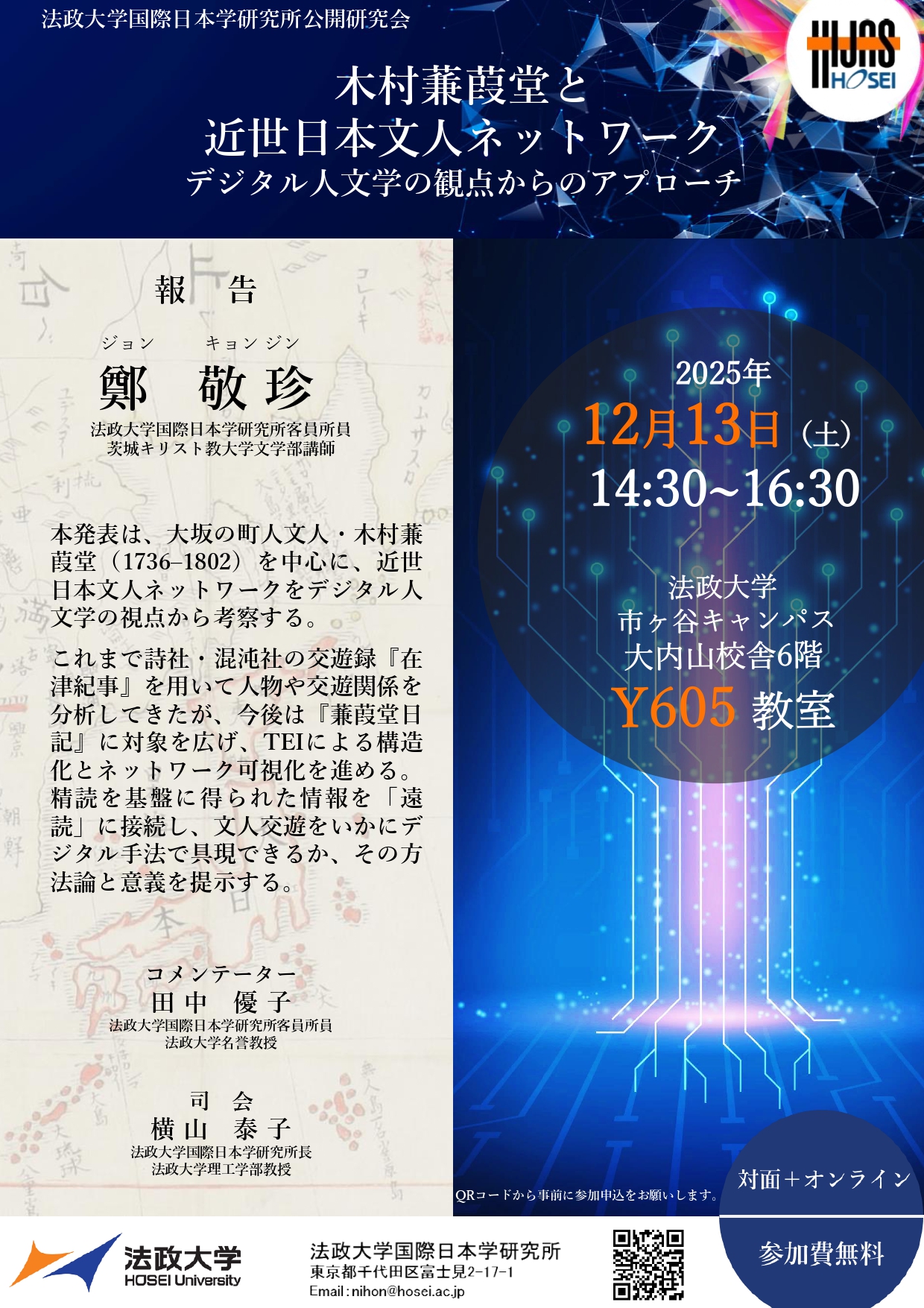 【開催案内】「木村蒹葭堂と近世日本文人ネットワーク:デジタル人文学の観点からのアプローチ」2025/11/11