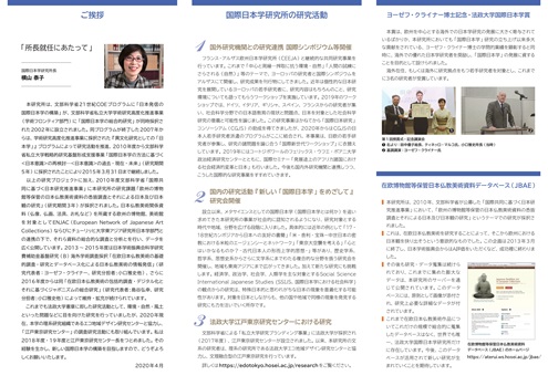 国際日本学研究所リーフレット(2020年作成版) 法政大学国際日本学研究所 HOME > 国際日本学研究所紹介 > 国際日本学研究所リーフレット(2020年作成版) 国際日本学研究所リーフレット2020年作成版(日本語)が完成いたしました ▼クリックすると拡大されます。[PDF]